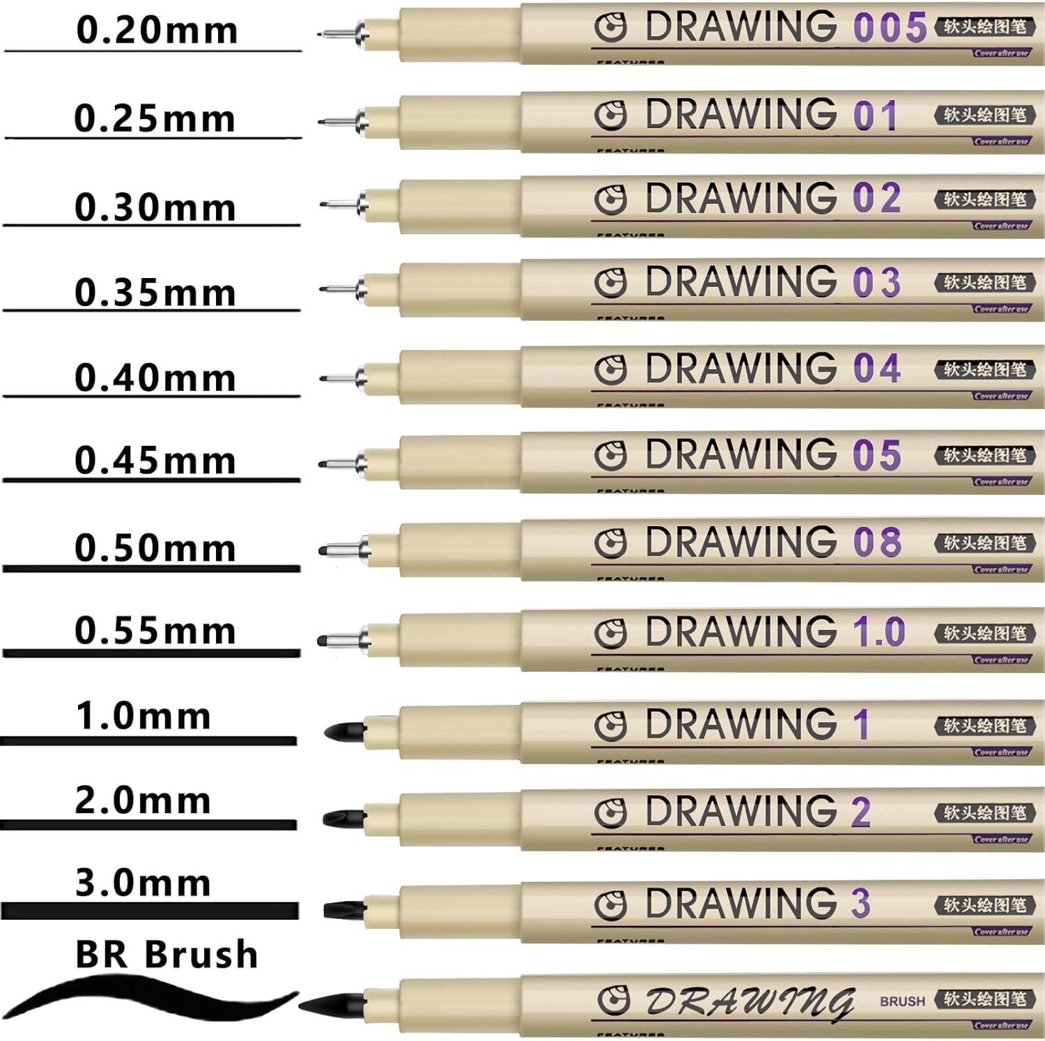 - Line Size: 0.20-3.0mm & Brush Millimeters