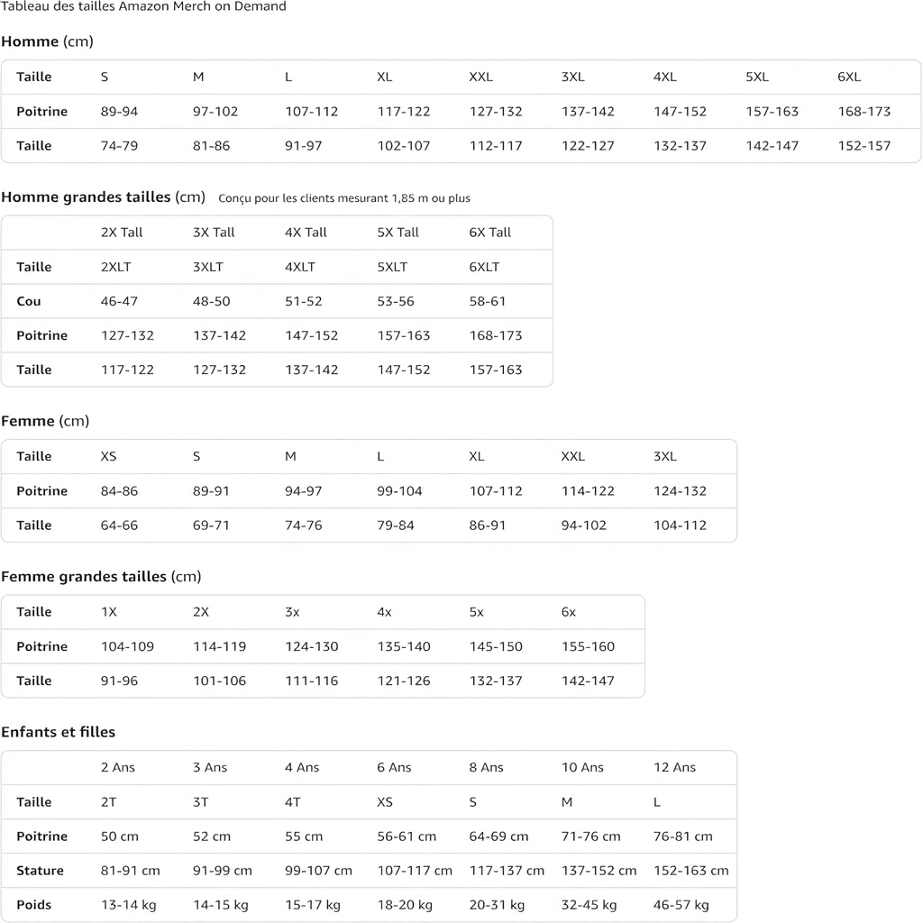 Le t-shirt est disponible en tailles S à 3XL ainsi qu’en version Homme standard, avec un choix de sept coloris élégants : Noir, Bleu Marine, Asphalte, Marron, Olive, Bleu Chiné et Bleu Royal. Le produit pèse environ 136 grammes et ses dimensions d’expédition sont de 25,4 x 20,32 x 2,54 cm.
